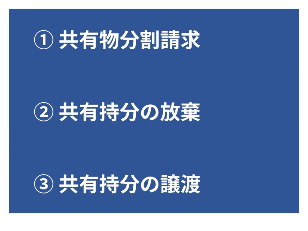 共有関係の解消または離脱する具体的な方法としては、以下のようなものがあります。