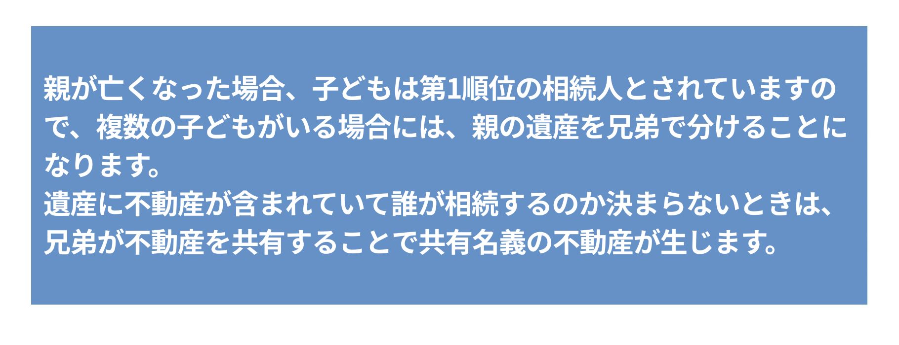 このように相続を原因とする共有が兄弟の共有名義になるケースとしてもっとも多いといえるでしょう。