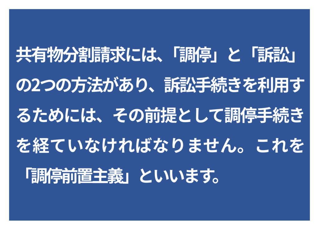 共有物分割請求による解決には、主に調停と訴訟の2つの方法があります。それぞれの特徴や手続きの流れを理解しておくことが重要です。