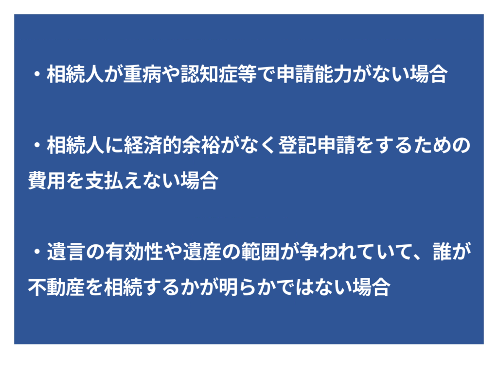 たとえ他の共有者が売却を希望しても、相続登記をしていない被相続人の持分については処分できず、全体として売却や活用が困難になります。