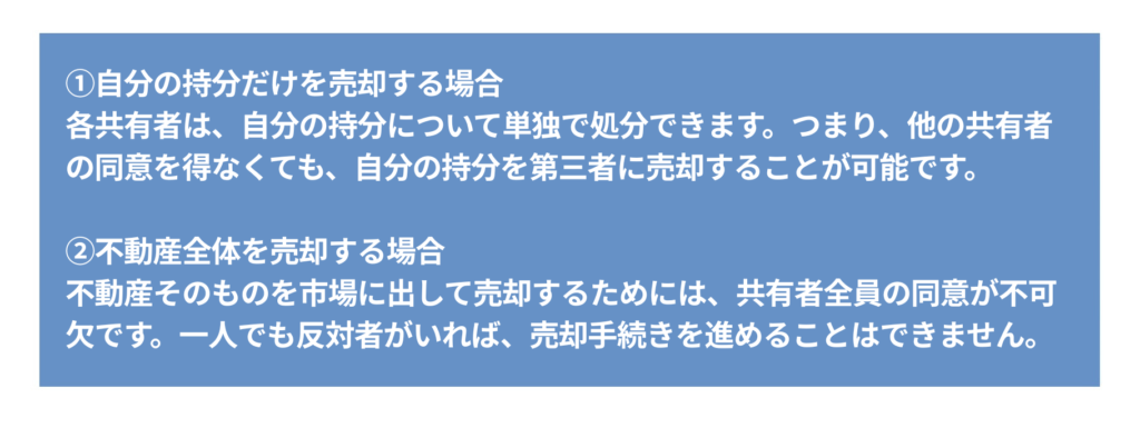 共有不動産を売却する際に全員の同意が得られなくても、自分の持分を単独で売却することは可能です。なぜなら、民法上、各共有者は、自己の持分を自由に処分できる権利を有しているからです。