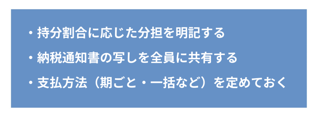 (3)固定資産税の支払いを共有契約で取り決めておく重要性